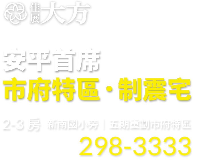 『佳展大方』 矗立於台南市政府、新南國小生活圈中,城市旗艦願景、居住日常感受,在這裡傾新品嚐;或許您是首次成家、首次換屋,我們都將為您呈現,最美好的新生活章節。